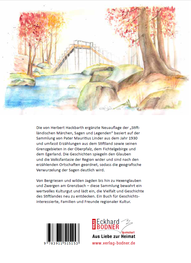 Die von Herbert Hackbarth ergänzte Neuauflage der „Stiftländischen Märchen, Sagen und Legenden“ basiert auf der Sammlung von Pater Mauritius Linder aus dem Jahr 1930 und umfasst Erzählungen aus dem Stiftland sowie seinen Grenzgebieten in der Oberpfalz, dem Fichtelgebirge und dem Egerland. Die Geschichten spiegeln den Glauben und die Volksfantasie der Region wider und sind nach den erzählenden Ortschaften geordnet, sodass die geografische Verwurzelung der Sagen deutlich wird.